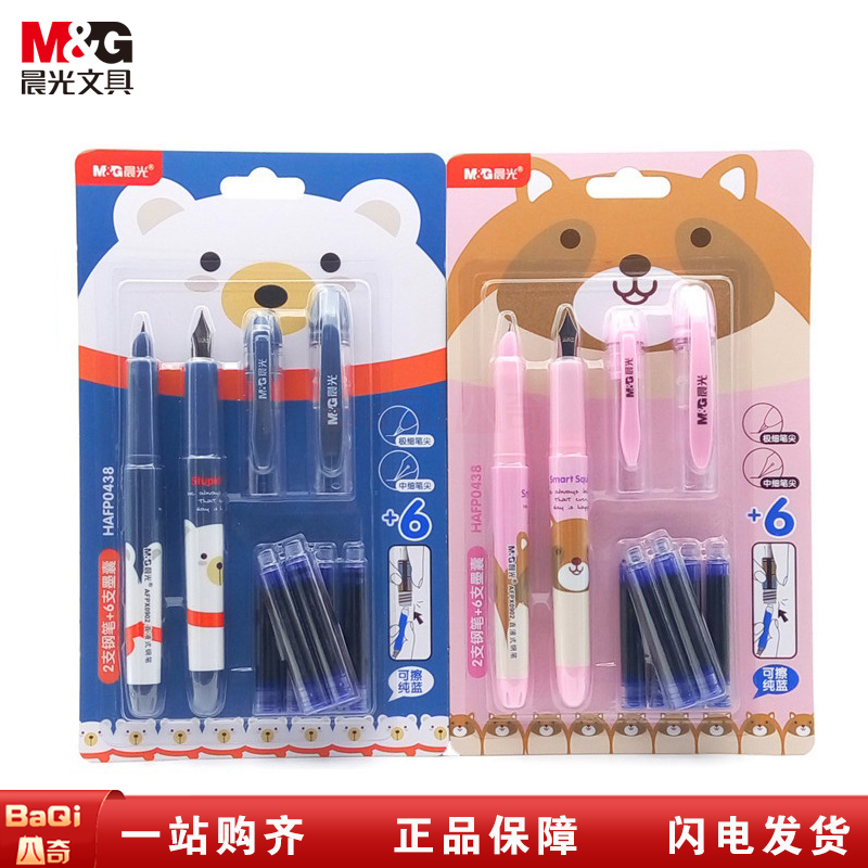 商品名称:晨光HAFP0438 可擦钢笔 学生练字笔墨水笔套装(2支直液式钢笔+6支墨囊) 黑色 单卡装