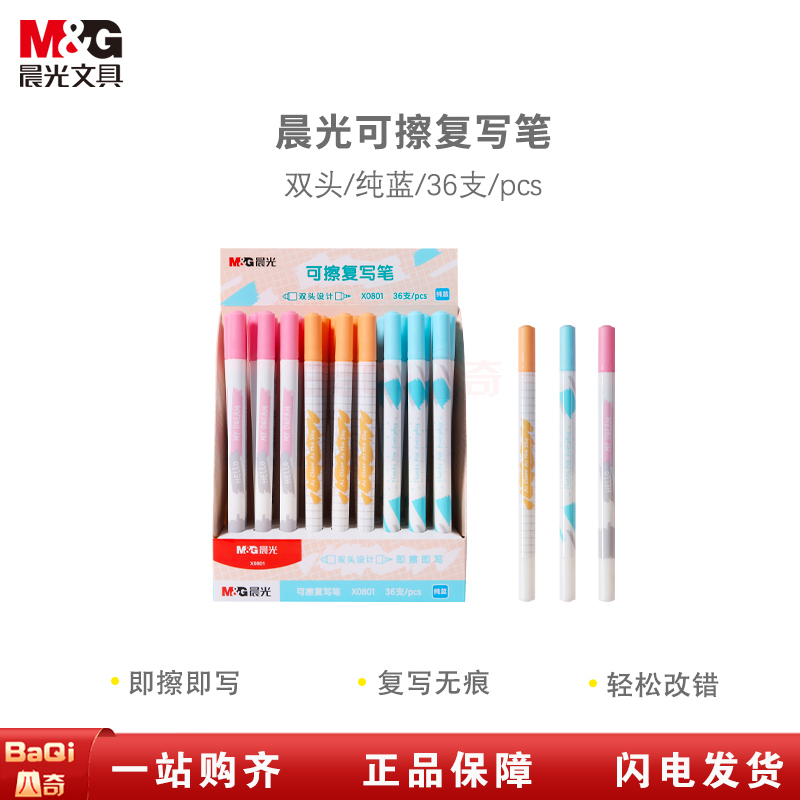 商品名称:晨光TSPX0801 消字笔魔笔复写笔小学生用消字笔双头魔擦纯蓝可爱消字复写笔一头可擦一头复写 (36支/盒)