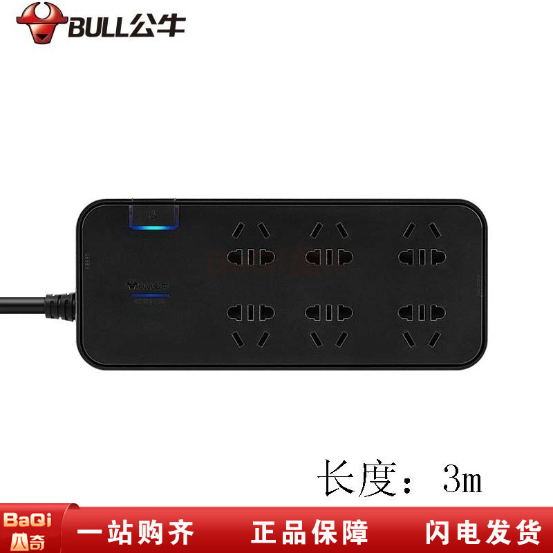 公牛 GN-H3060 电源插座 新国标带3米电源线6孔家用电源抗电涌接线板过载保护排插拖线板