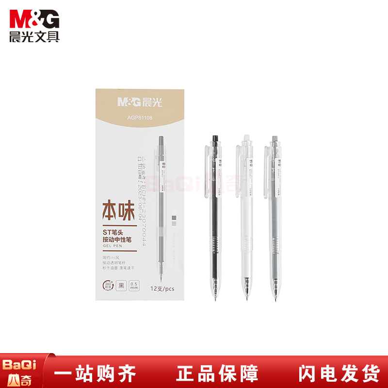 商品名称:晨光AGP81108 中性笔按动笔学生用刷题笔透明简约笔杆ST笔头0.5mm签字笔黑色水笔考试用笔 (12支/盒)
