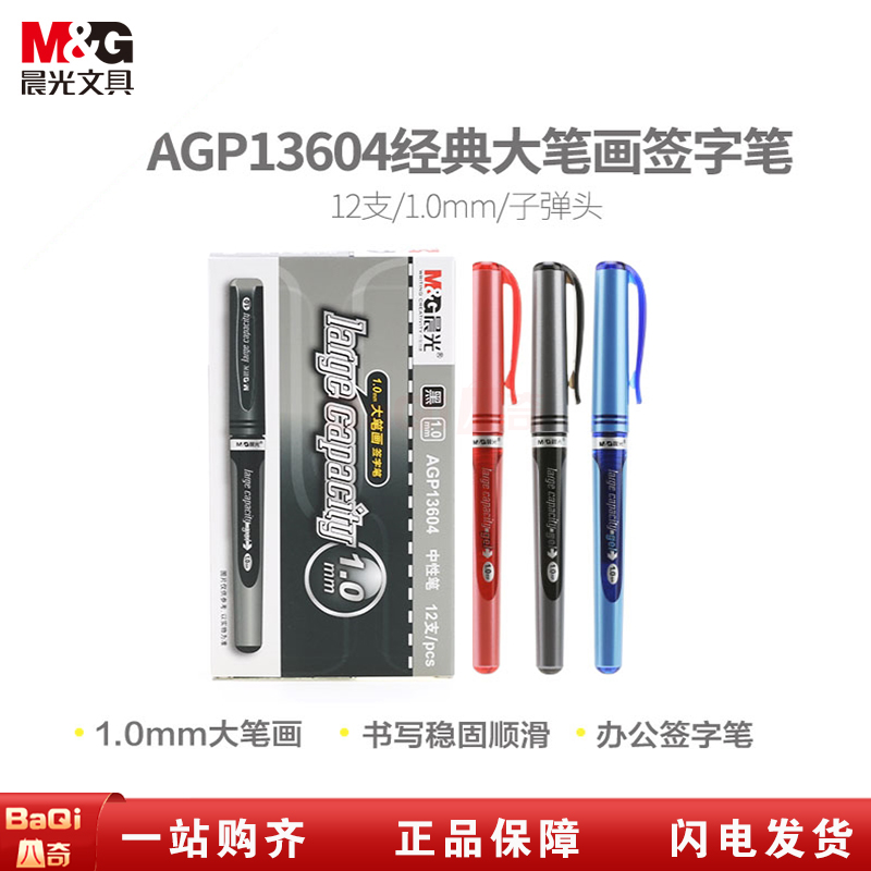 商品名称:晨光 AGP13604中性笔 大笔画签名签字笔1.0mm 子弹头水性笔 黑色/红色 (12支/盒)