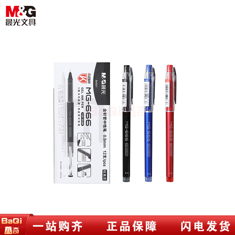 商品名称:晨光AGPB4501 中性笔 MG666系列办公考试签字笔 全针管水笔0.5mm 黑色/蓝色/红色 (12支/盒)