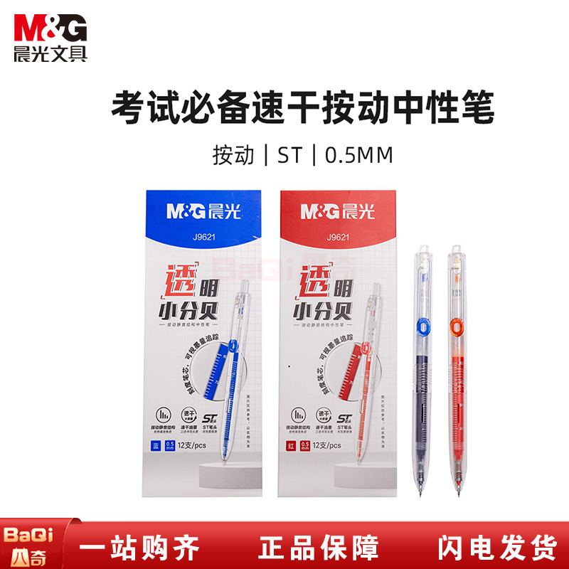 商品名称:晨光AGPJ9621 考试必备速干0.5mm按动中性笔 黑色/红色/蓝色(12支/盒)