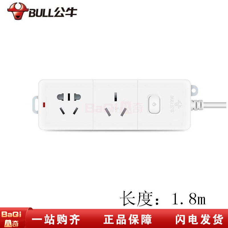 商品名称:公牛 GN-606D 电源插座 新国标有线1.8米2孔位带开关拖线板接线板排插16A大功率空调热水器家用