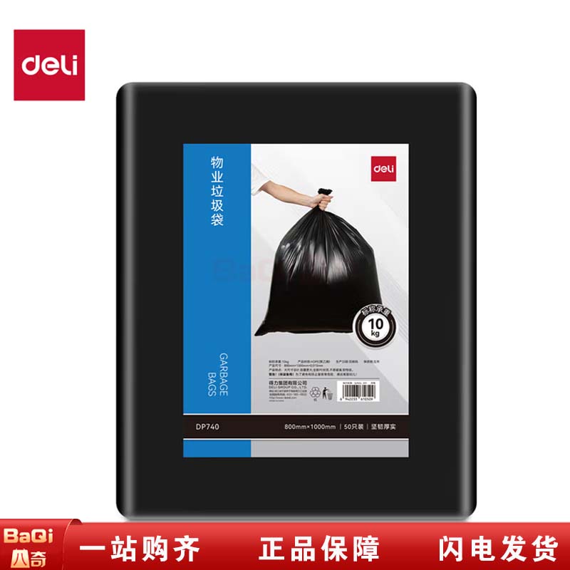商品名称:得力 DP740清洁劳保80*100cm平口平底垃圾袋 黑色 50只/包