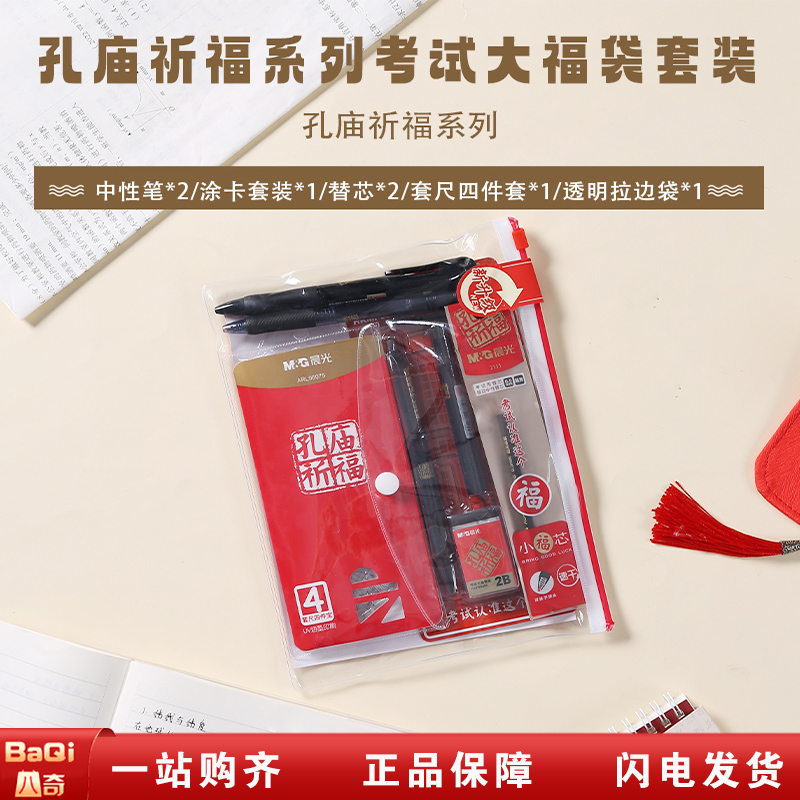 商品名称:晨光HKGP0462 孔庙祈福考试套装高考中考文具套装2b自动铅笔读答题卡全套考试用品 (13件套)