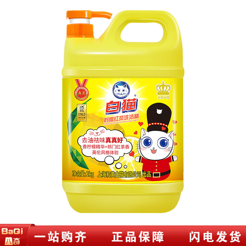 商品名称:白猫 柠檬红茶洗洁精 2kg 大桶洗碗液洗洁精食品级洗涤剂( 8瓶/箱)