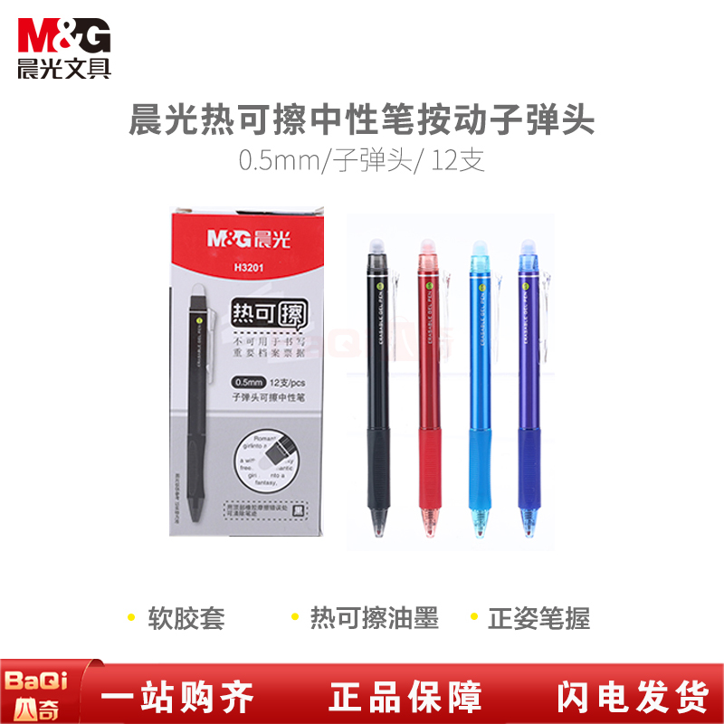 商品名称:晨光AKPH3201 可擦笔热易擦笔中性笔 0.5mm 黑色/晶蓝色 (12支/盒)