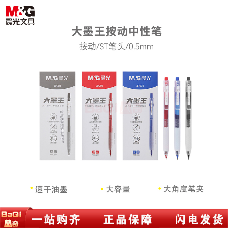 商品名称:晨光AGPJ9001 大墨王按动中性笔学生考试用签字笔大容量笔芯书写顺滑简约中性笔 黑色/红色/蓝色 0.5mm (12支/盒)