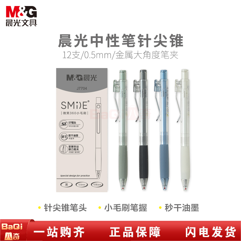 商品名称:晨光AGPJ7704 针尖锥系列速干小毛刷硅胶按动笔中性笔高颜值ins考试专用刷题笔 0.5mm 黑色(12支/盒)