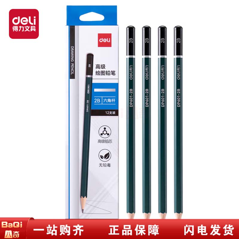 商品名称:得力 DP601-2B 绿色六角杆书写铅笔2B 混 12支/盒