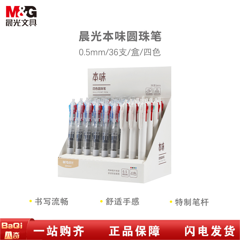 商品名称:晨光ABP80307 本味系列四色圆珠笔按压式多色笔合一多功能 四色0.5mm圆珠笔 (36支/盒)