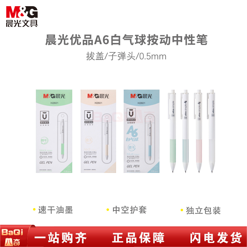 商品名称:晨光AGPH2601 中性笔速干简约按动笔学生用水笔办公签字笔考试0.5mm子弹头黑色 (10支/盒)