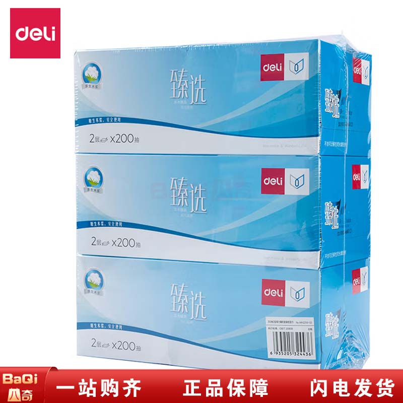 商品名称:得力 MH2200-02 2层200抽本木臻选盒装抽纸面巾纸 白 3盒/提
