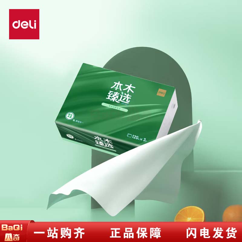 商品名称:得力 MR3120-02 3层120抽S码本木臻选软抽纸面巾纸 白 8包/提