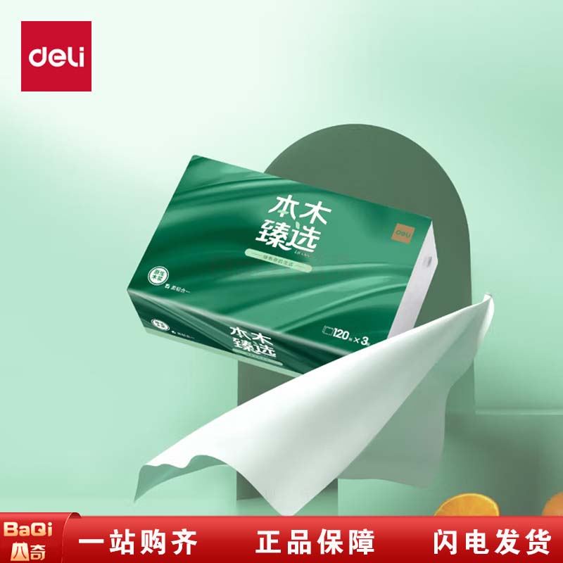 商品名称:得力 MR3120-03 3层120抽M码本木臻选软抽纸面巾纸 白 6包/提