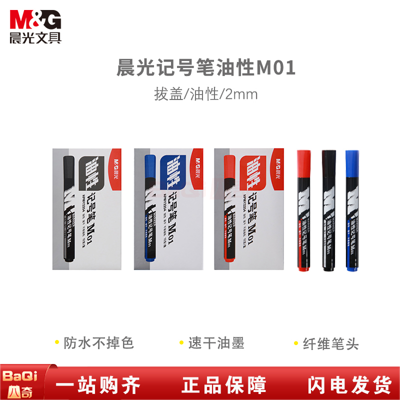 晨光APMY2204 单头记号笔油性笔马克笔标记笔 黑色/蓝色/红色 (10支/盒)