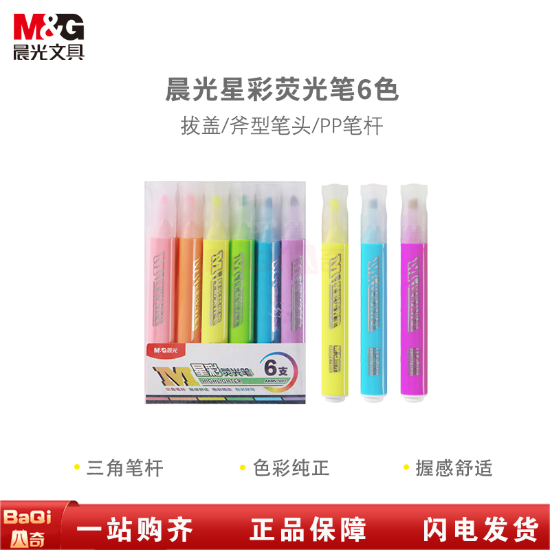 商品名称:晨光AHMV7602 荧光笔 经典单头记号笔 醒目重点标记笔 星彩系列水性手账手绘笔 6色 (6支/盒)