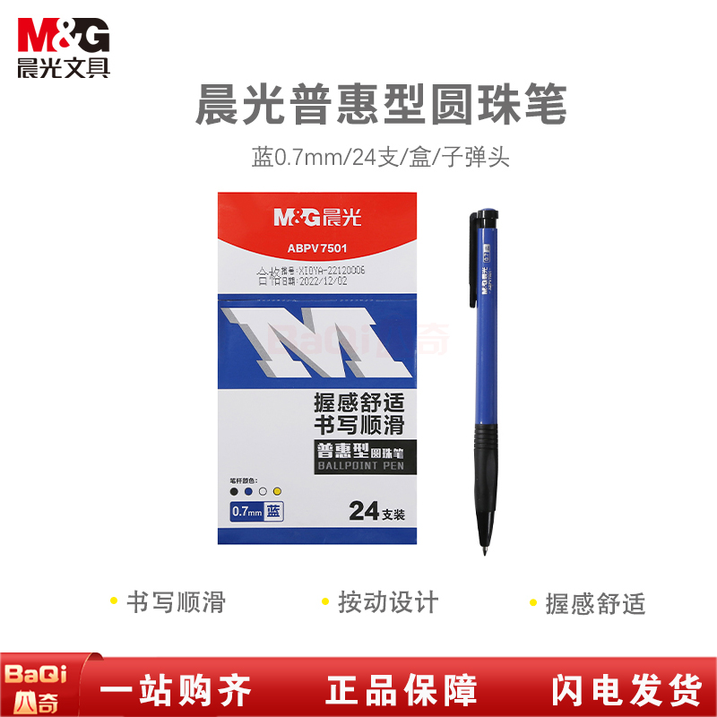 商品名称:晨光ABPV7501 经典按动圆珠笔 办公子弹头原子笔 普惠型中油笔 红色/蓝色/黑色 (24支/盒)