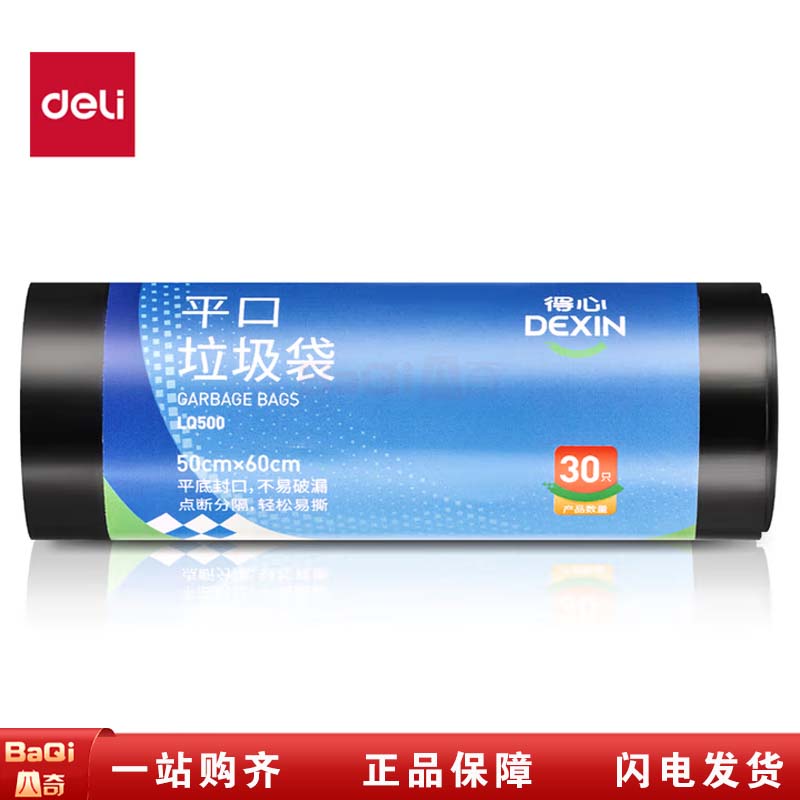商品名称:得力 LQ500 50*60cm得心平口垃圾袋 黑色 30只/卷 1卷/包