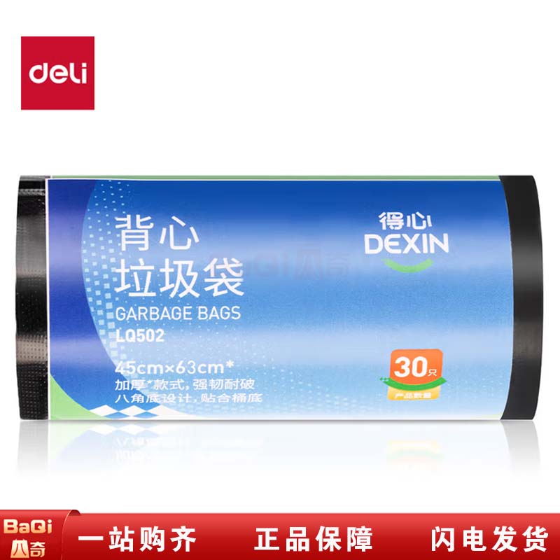 商品名称:得力 LQ502 45*63cm得心背心式垃圾袋 黑色 30只/卷 1卷/包