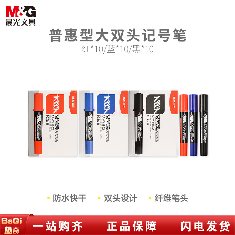 商品名称:晨光APMY1802 物流水笔油性笔大双头记号笔 黑色/蓝色(10支/盒)