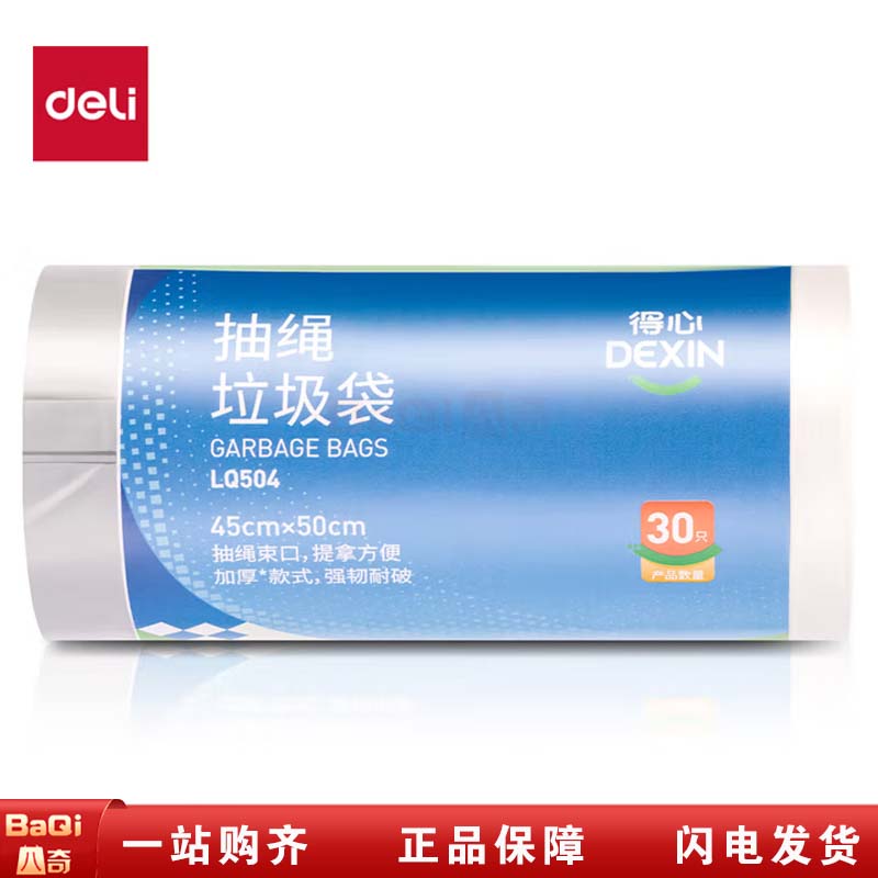 商品名称:得力 LQ504 45*50cm得心抽绳垃圾袋 白色 30只/卷 1卷/包
