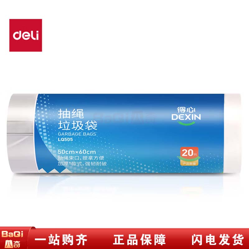 商品名称:得力 LQ505 50*60cm得心抽绳垃圾袋 白色 20只/卷 1卷/包