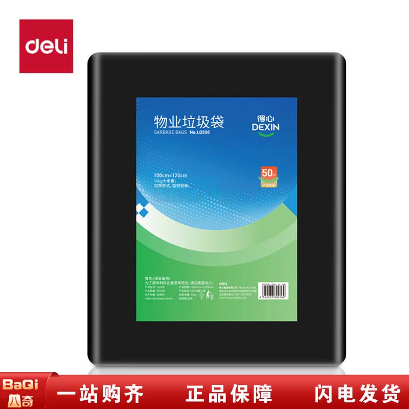 商品名称:得力 LQ508 100cmx120cm得心物业平口垃圾袋 黑色 50只/包