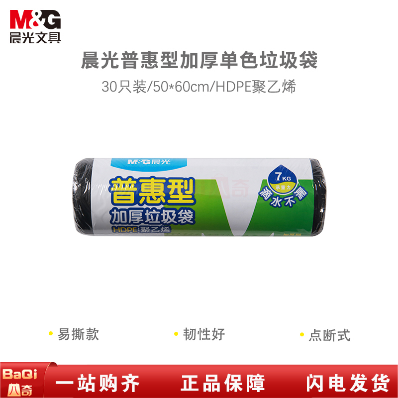 商品名称:晨光ALJ99434 50*60cm/黑色加厚型分类垃圾袋 平口防水清洁袋 垃圾分类 (单卷装)