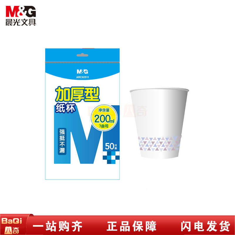 商品名称:晨光ARC92511 纸杯 一次性水杯商务办公杯加厚200ml家用冷热杯 白色 (50只/袋)