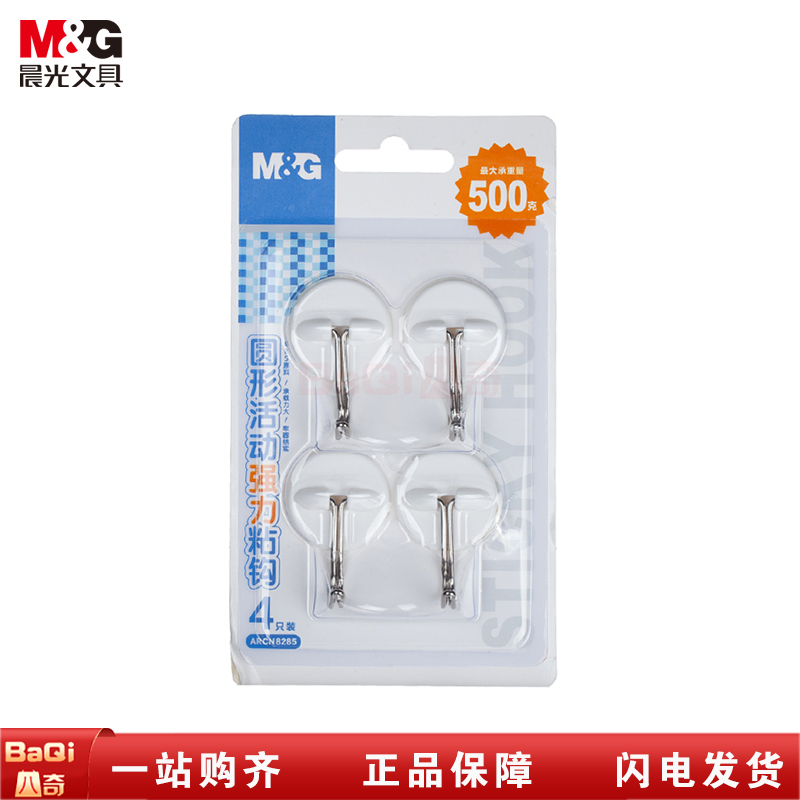 商品名称:晨光ARCN8285 免钉挂钩厨房浴室门后壁挂衣服挂勾墙壁无痕强力挂衣钩简约强力粘钩 活动粘钩(4只/卡)