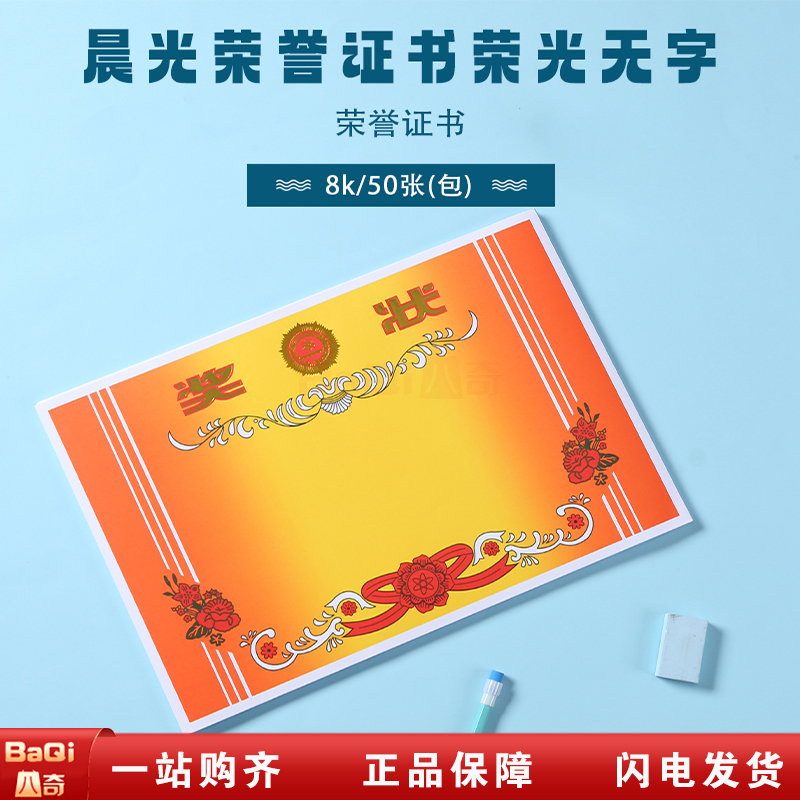 商品名称:晨光ASC99373 学校班级小学生空白奖状纸幼儿园好孩卡通奖状纸 荣光系列 8K无字款(50张/包)