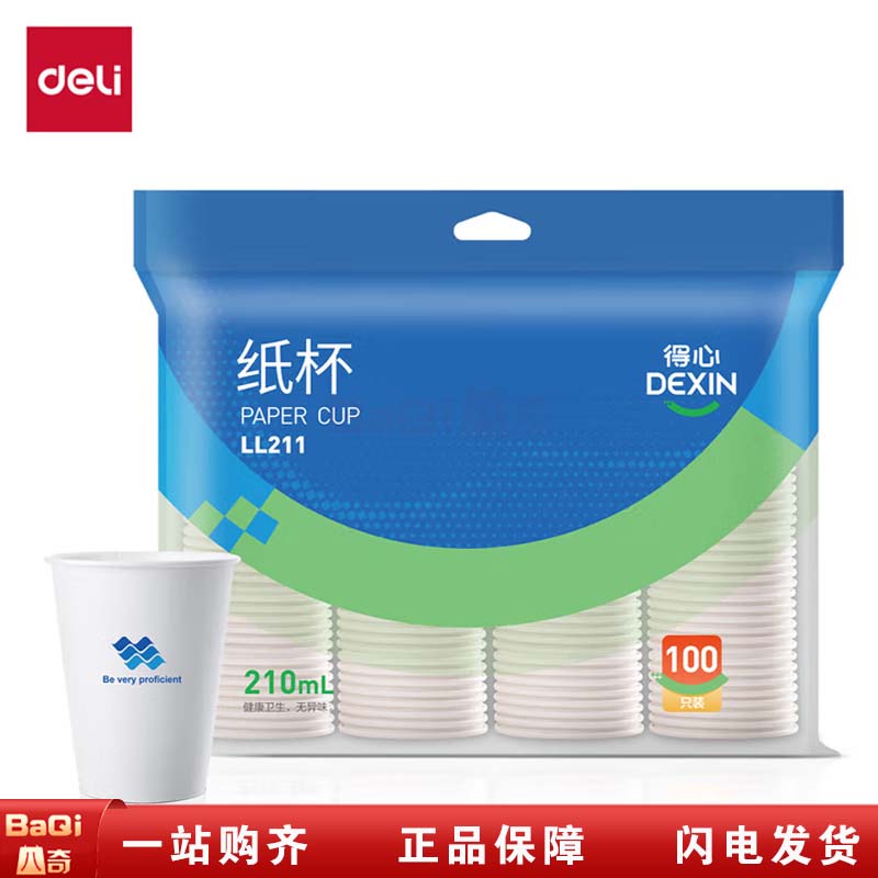 商品名称:得力 LL211 210mL得心一次性纸杯 白色 100只/袋