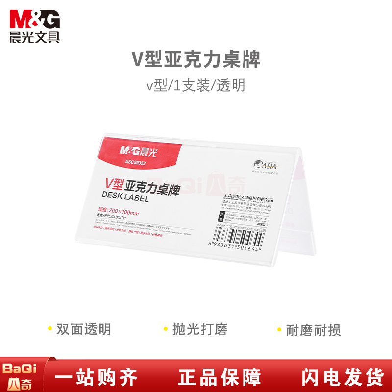 商品名称:晨光ASC99353 V型台卡 200*100mm亚克力桌牌台签 会议席位卡 座位牌广告展示牌 (单个价)