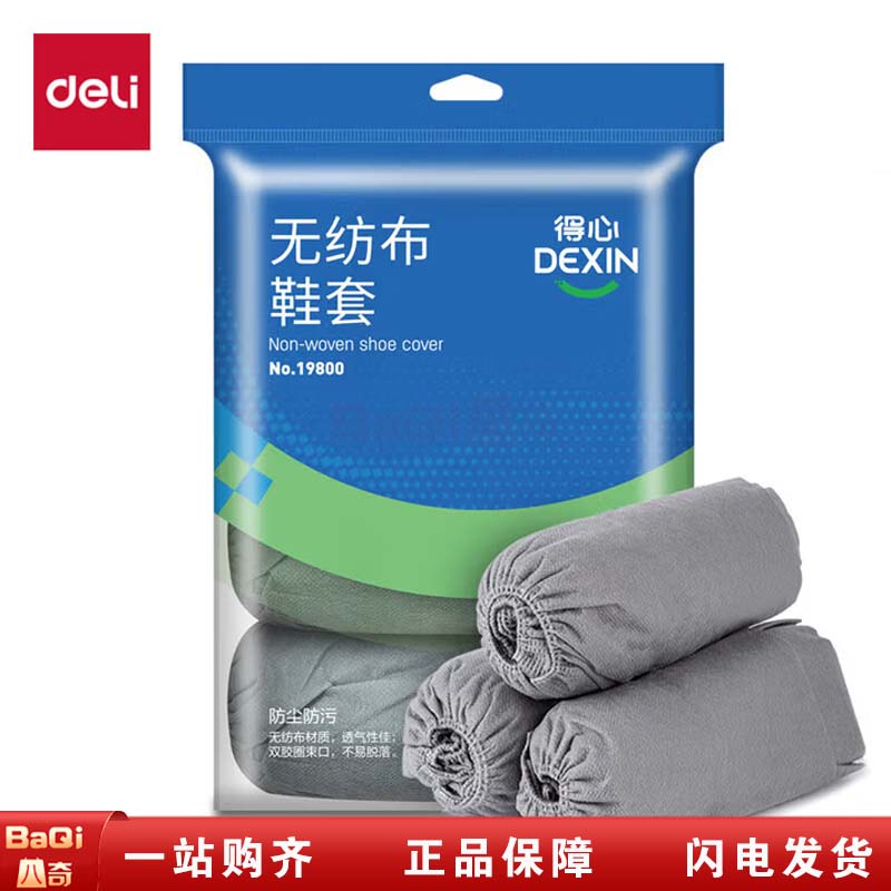 商品名称:得力 19800得心均码无纺布鞋套 灰色 20双/包