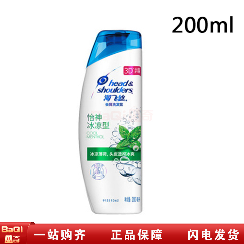 商品名称:海飞丝 洗发水怡神冰凉型200ml男女士长效去屑洗发露清爽