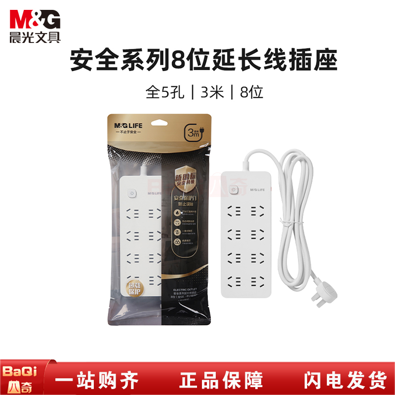 商品名称:晨光AEA98683 8位5孔 3米 带过载保护安全插排插座排插