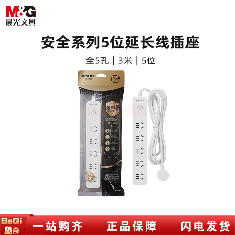 商品名称:晨光AEA98692 5位5孔 3米 带过载保护安全插排插座排插