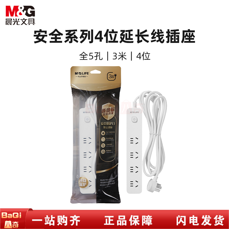 商品名称:晨光AEA98693 4位5孔 3米 带过载保护安全插排插座排插