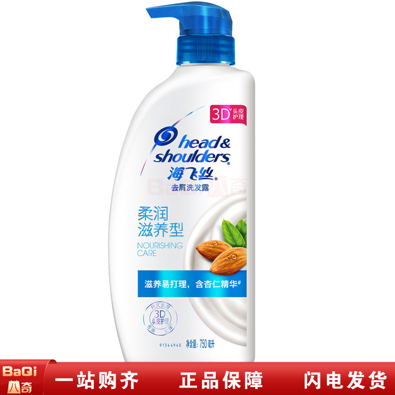 商品名称:海飞丝 柔润滋养洗发水露乳750ml杏仁精华去屑头皮男女家庭装