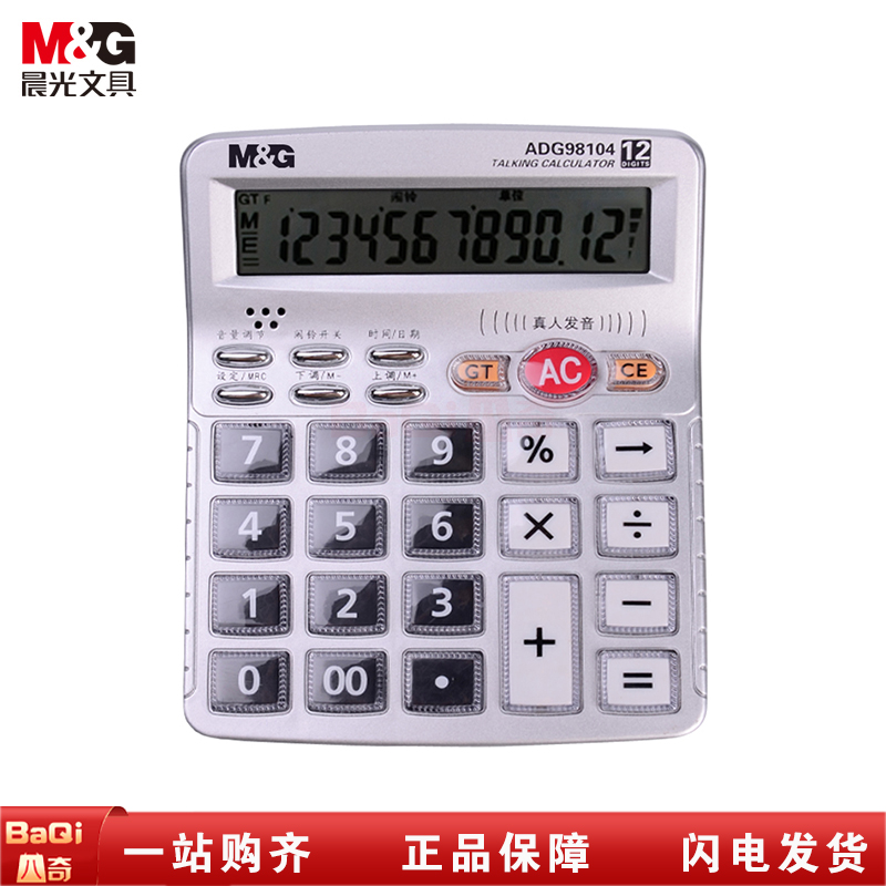 商品名称:晨光ADG98104 文具12位显示语音计算器 桌面办公计算机 学生/办公通用 大屏幕计算器 银色单个装