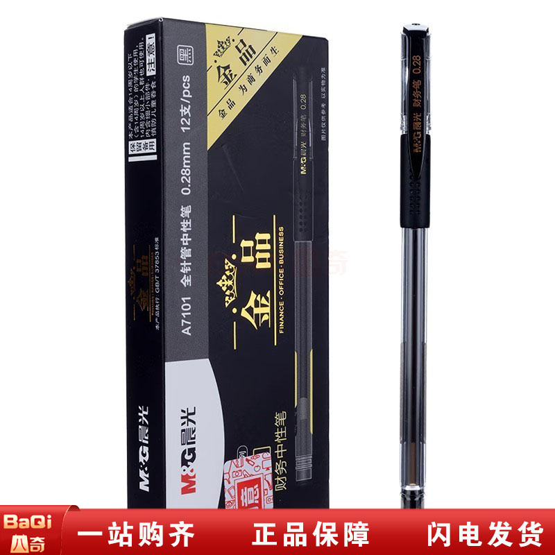 商品名称:晨光 AGPA7101中性笔 拔盖全针管财务用签字笔 金品系列水笔 0.28mm 黑色(12支/盒)