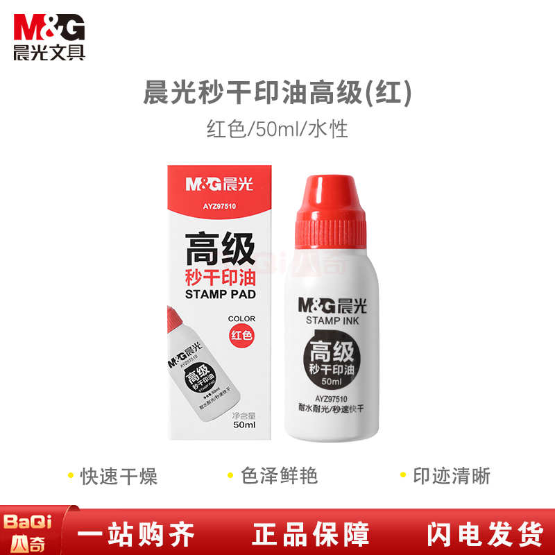 商品名称:晨光AYZ97510 财务印泥油不易晕染 办公财务用品 高级秒干印油-50ml红 (1瓶装)