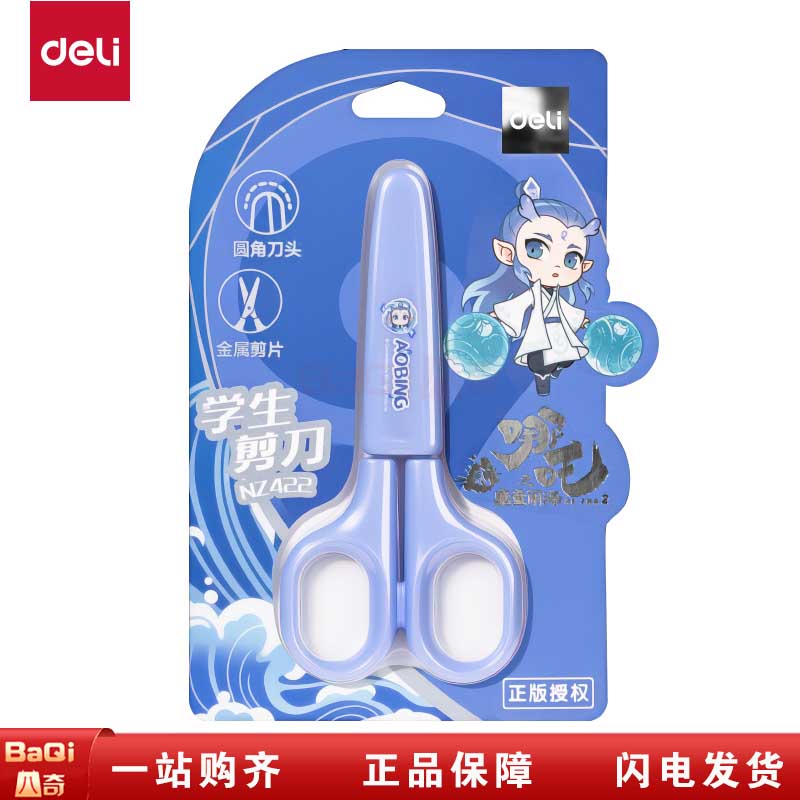 得力NZ422蓝色敖丙安全手工剪刀办公用品