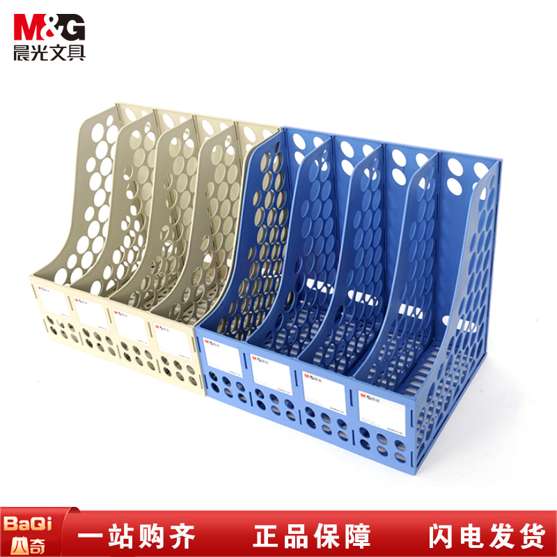 晨光ADM94740 四联镂空桌面文件框 四栏带标签稳固文件栏/文件筐/资料框 蓝色/灰色 (1个装)