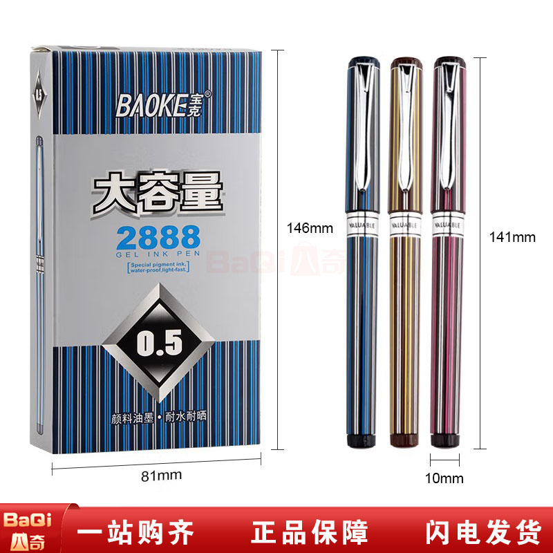 商品名称:宝克 PC2888 中性笔 0.5mm黑色 颜色随机 12支/盒