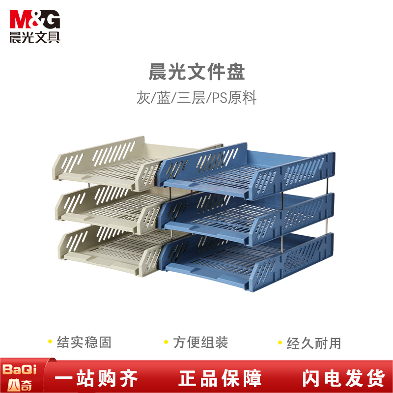 商品名称:晨光ADM94743 三层镂空收纳文件座 自由拆卸组装三层文件盘/文件框 办公用品 蓝色/灰色 (1个装)