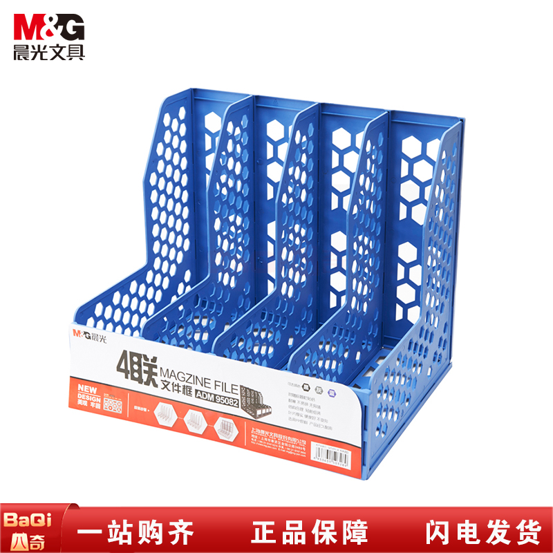 商品名称:晨光ADM95082 文件筐文件架多层资料档案桌面书架四联办公桌收纳置物 蜂窝形四联款 蓝色 /黑色单 (1个装)