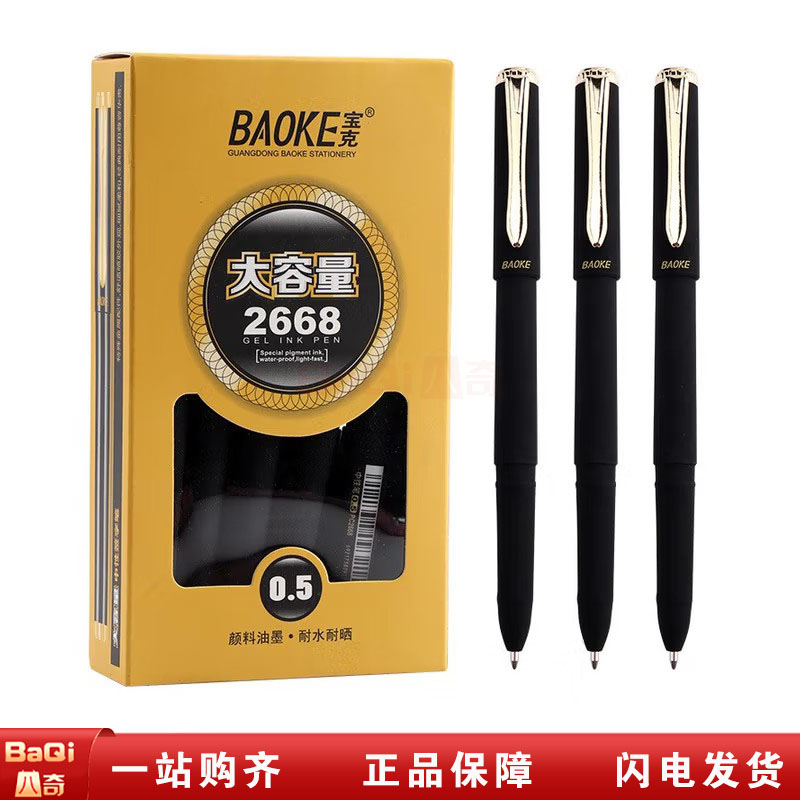 商品名称:宝克PC2668磨砂杆大容量中性笔 0.5mm黑色 12支装